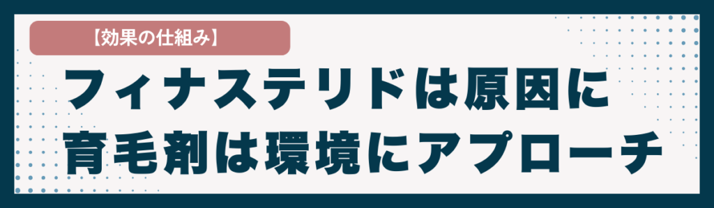 【効果の仕組み】フィナステリドは原因に、育毛剤は環境にアプローチ